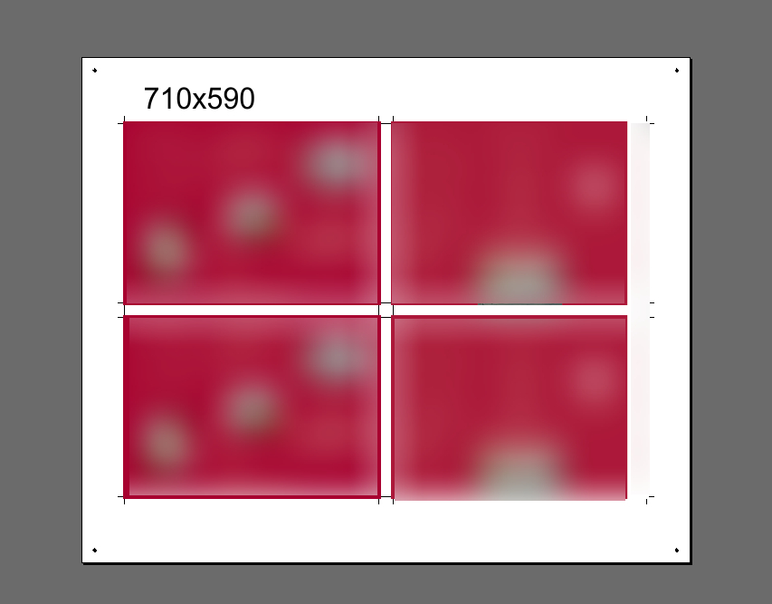 W trzecim załączniku widać znowu układ impozycyjny na wydruk ulotki A4 składanej w pół. Tylko że grafik tam zmieścił dwie ulotki. Wział też rozmiar papieru jakiś większy i on mnie dziwi. Co to za 710 x 590 jest?! I idąc tym tropem...