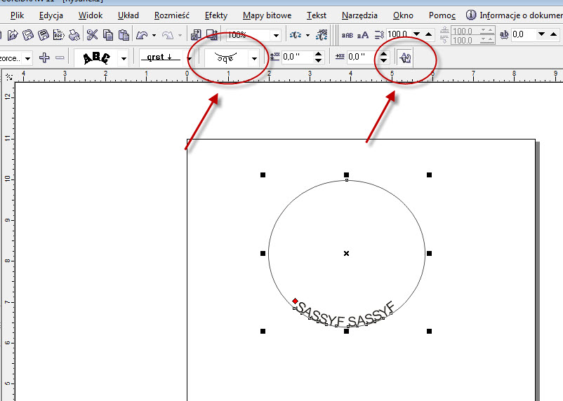 Tutaj masz szczegółowo opisane jak pisać po okręgu: