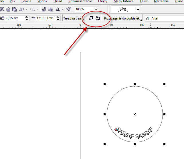 tylko jeśli rysuje ścieżkę (okręgu) i potem próbuje dodać tekst to ten tekst pisze się na okręgu (za zewnątrz od prawej strony) a ja chce zrobić w środku od lewej