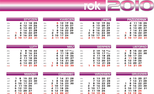Wysłany: 1 Listopad 2009, 16:28 kalendarium na 2010