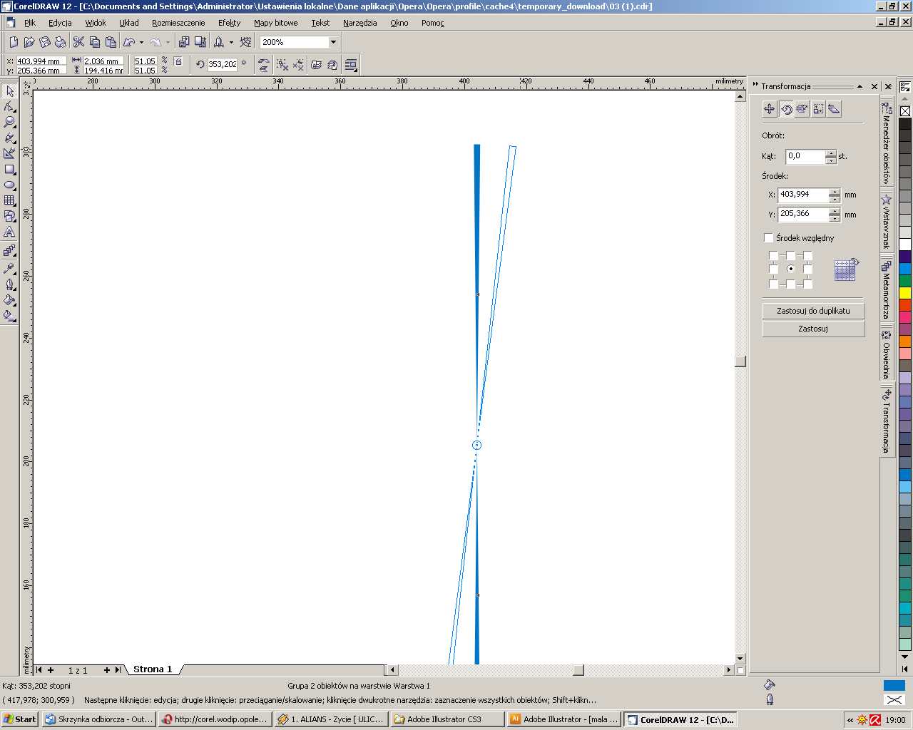 przy pomocy palety transformacje obracam o 5 stopni względem środka,