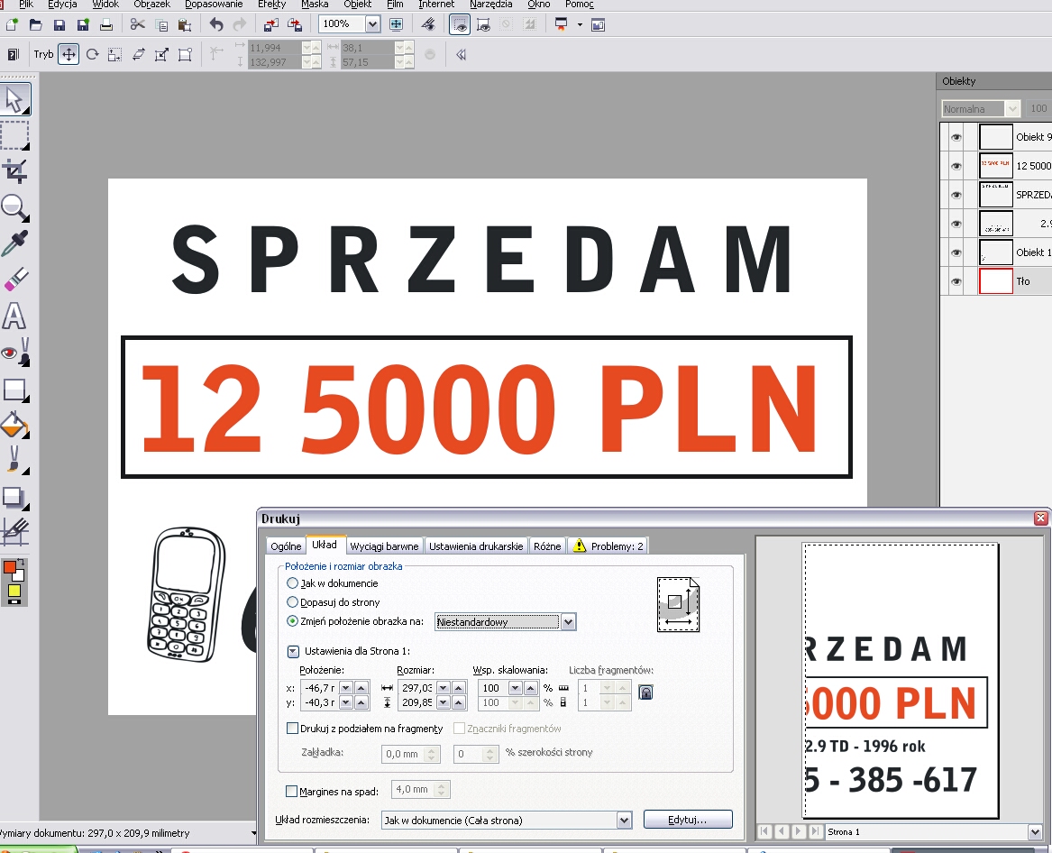 | changela napisał/a: | | zmien ustawienia drukarki na poziome drukowanie i po kłopocie:) |