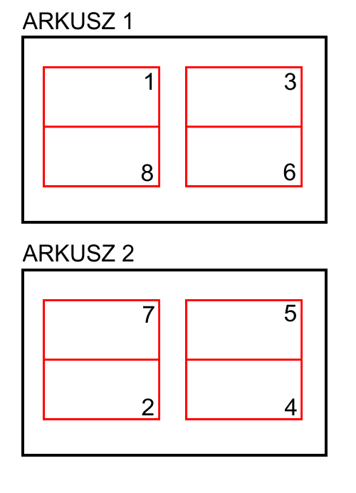 | Cytat: | | Zrób z kartką A4 to, co mówiłem - złóż ją 3x na pół i ponumeruj strony, a potem rozłóż i popatrz, jak są umieszczone na arkuszu. |