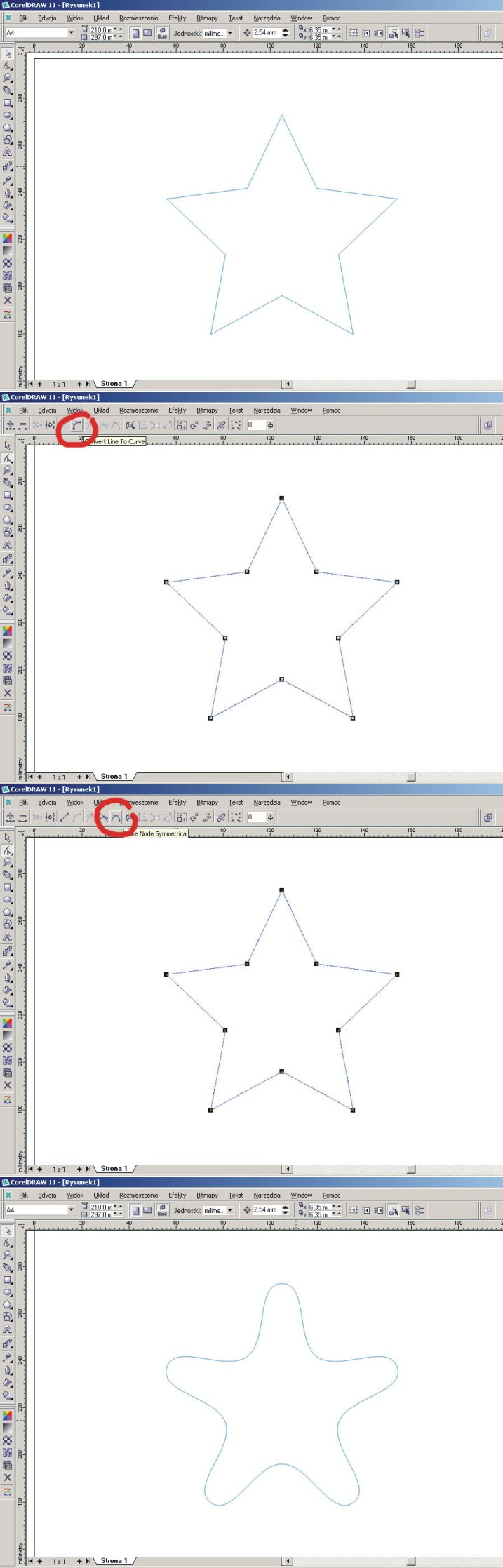 Moskit twój sposób u mnie nie działa zrobilem tak jaki piszesz zaznaczylem wezly, w krzywą, wezel symetryczny i z nieregularnego wieloboku, wielokąta zrobiło mi się jajo. :)
