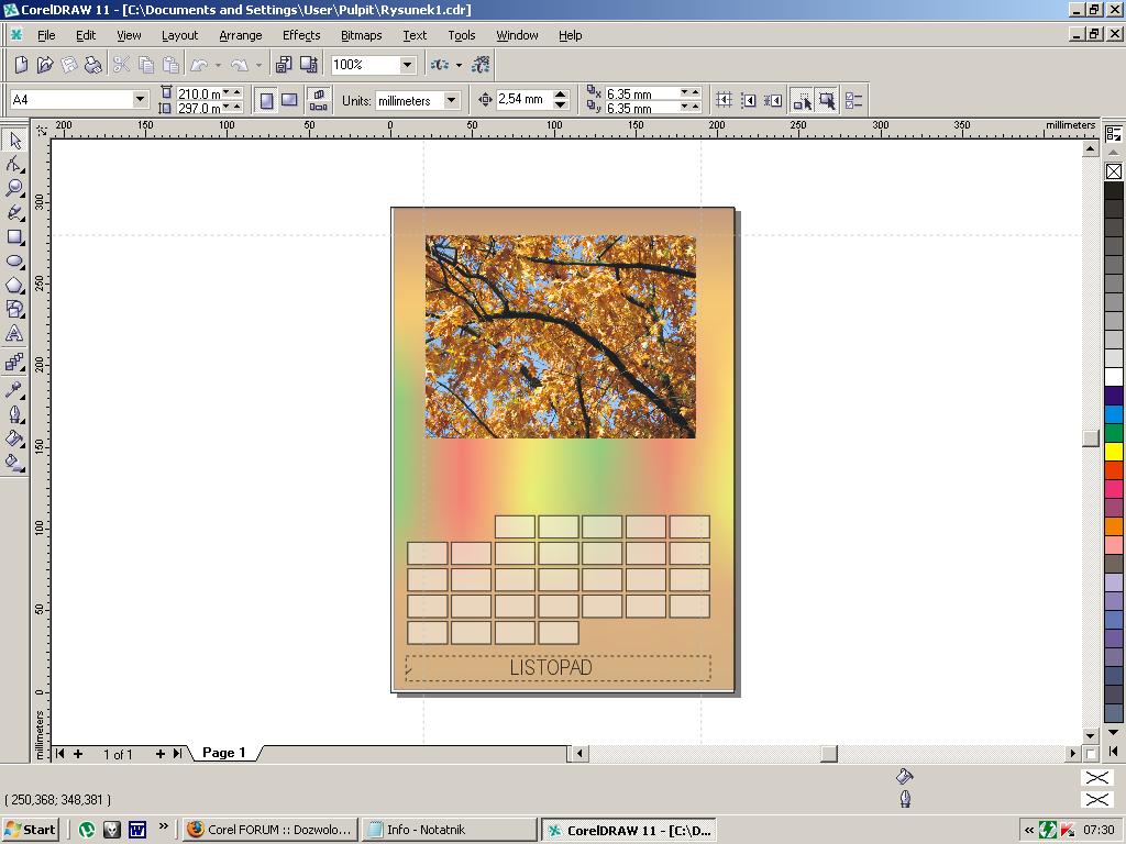 Tak tylko wiedza jak ma wyglądać ten kalendarz nie wystarczy kiedy sie nie zna obsługi CORELA
