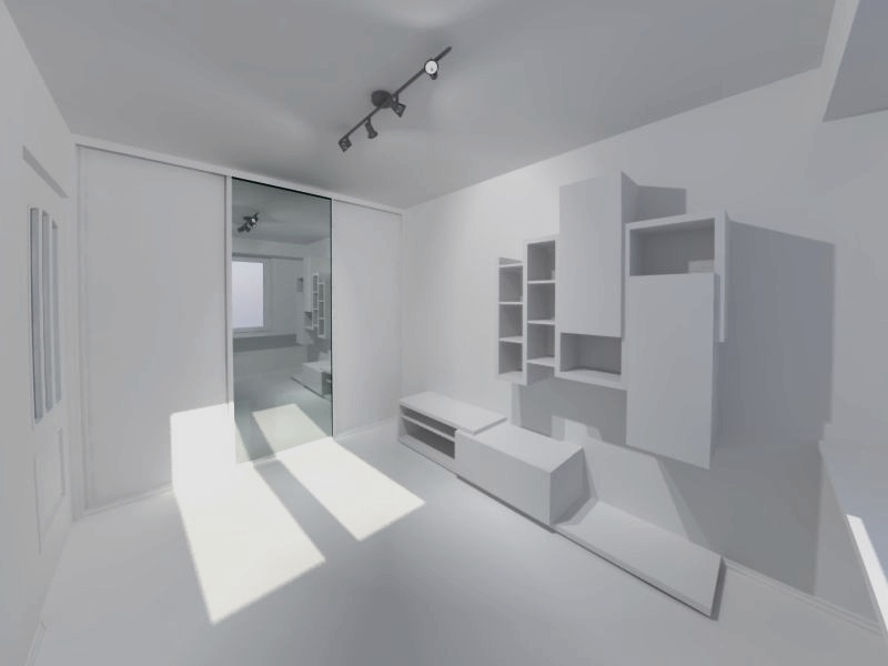 Na razie nie bawiłem się w tekstury, bo jeszcze nie cały pokój jest wymodelowany (łóżko, jakieś ozdoby, tv itp.), dlatego wszystko jest szare, ale podstawowe teksturowanie jest bardzo proste w tym programie. Jeśli chce się uzyskać bardzo ładną, fotorealistyczną wizualizację, to niestety plugin V-ray oraz konkretne godziny pracy z teksturowaniem, ustawianiem materiałów, świateł itd. jednak efekt z pewnością będzie wart zachodu;)