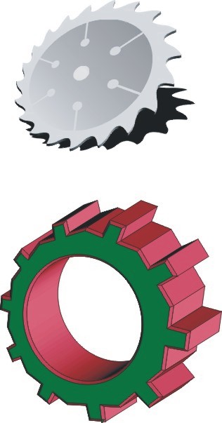 A te rysuneczki akurat mi się podobają. Tylko w 'pile' na górze wydaje mi się, że osie symetrii się delikatnie rozchodzą, na dole za to ta zębatka jest trochę zbyt kanciasta. Długo by taki mechanizm chyba nie popracował.
