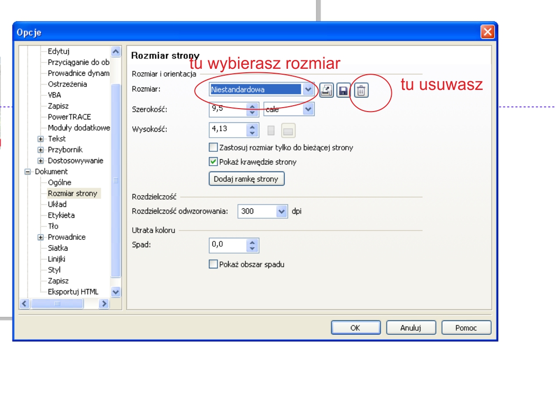 Edycja listy predefiniowanych rozmiarów dokumentów