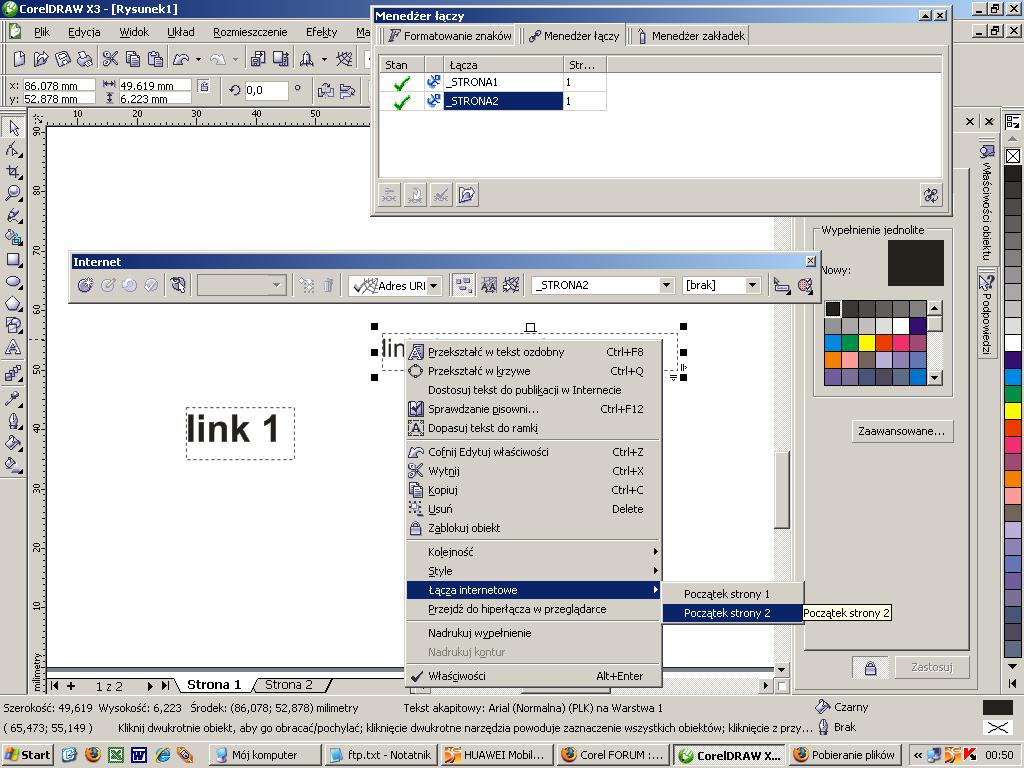 Proszę o pomoc w rozwiązaniu problemu z tworzeniem łączy 'wewnętrznych' w Corel X3 pl.