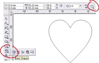 step 01.jpg Rysujemy kształt (w tym przypadku serduszko). Z lewej belki narzędziowej wybieramy narzędzie "Basic Shapes" (patrz step 01.jpeg). Rysujemy metodą kliknij i pociągnij:)