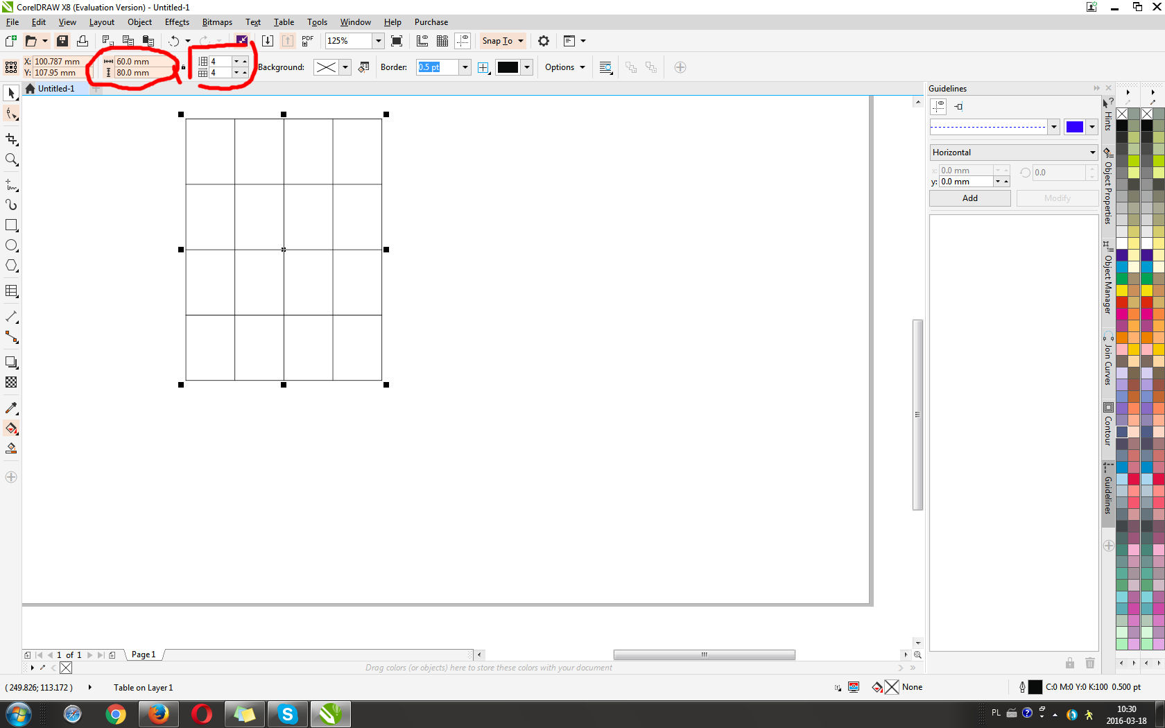 Aby zrobić identyczne ramki w tabeli jest potrzebna opcja w corel draw opcja "rozłóż równomiernie" która u mnie jest hmm... "wygaszona" i nie ma możliwości jej wciśnięcia.