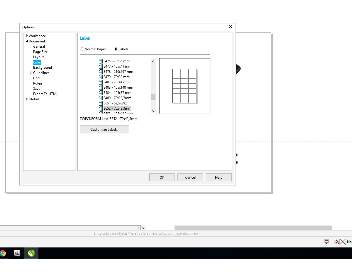 Mam etykietę o rozmiarze 70x42.3 mm. W Corelu jest opcja pozwalająca na wydrukowanie jej na arkuszu A4 z jednoczesnym jej powieleniem w 3 kolumnach i 7 wierszach (załączam zrzut)- razem 21 użytków.