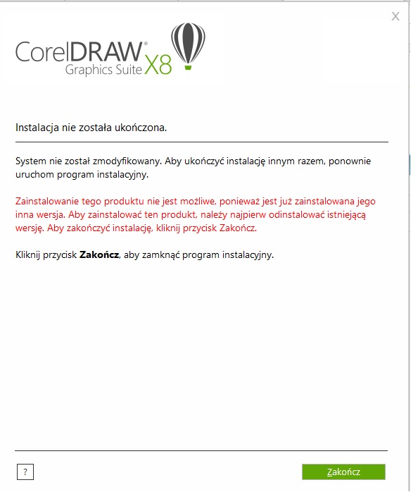 Mam problem z instalacją Corela X8. Po zalogowaniu się, po rozpoczęciu procesu instalacji (ok. minuta, 11% proces )pojawia się komunikat (w załączeniu)