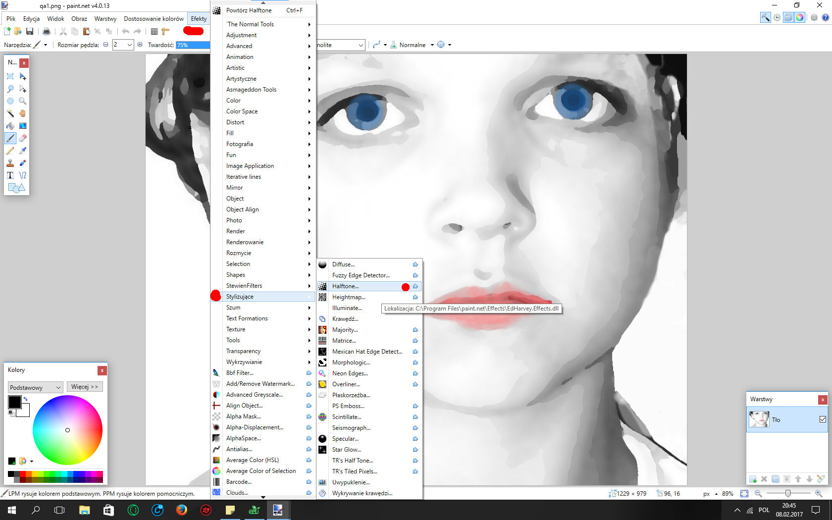 potem efekty-stylizacja -halftone- line centered no i sobie pokrecic buttonami |