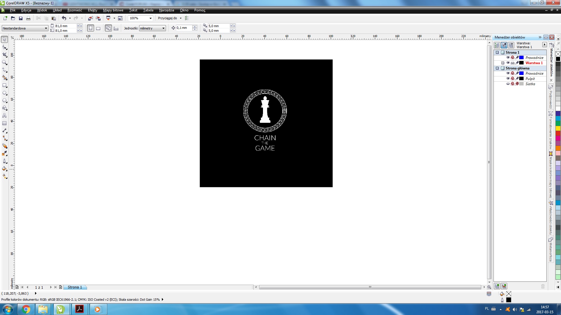 Ja już nie wiem.... dałem 81 x 81 i dałem ten kwadrat czarny na tło, większy niż rozmiar strony. I dałem przy zapisywaniu 2 mm spad.