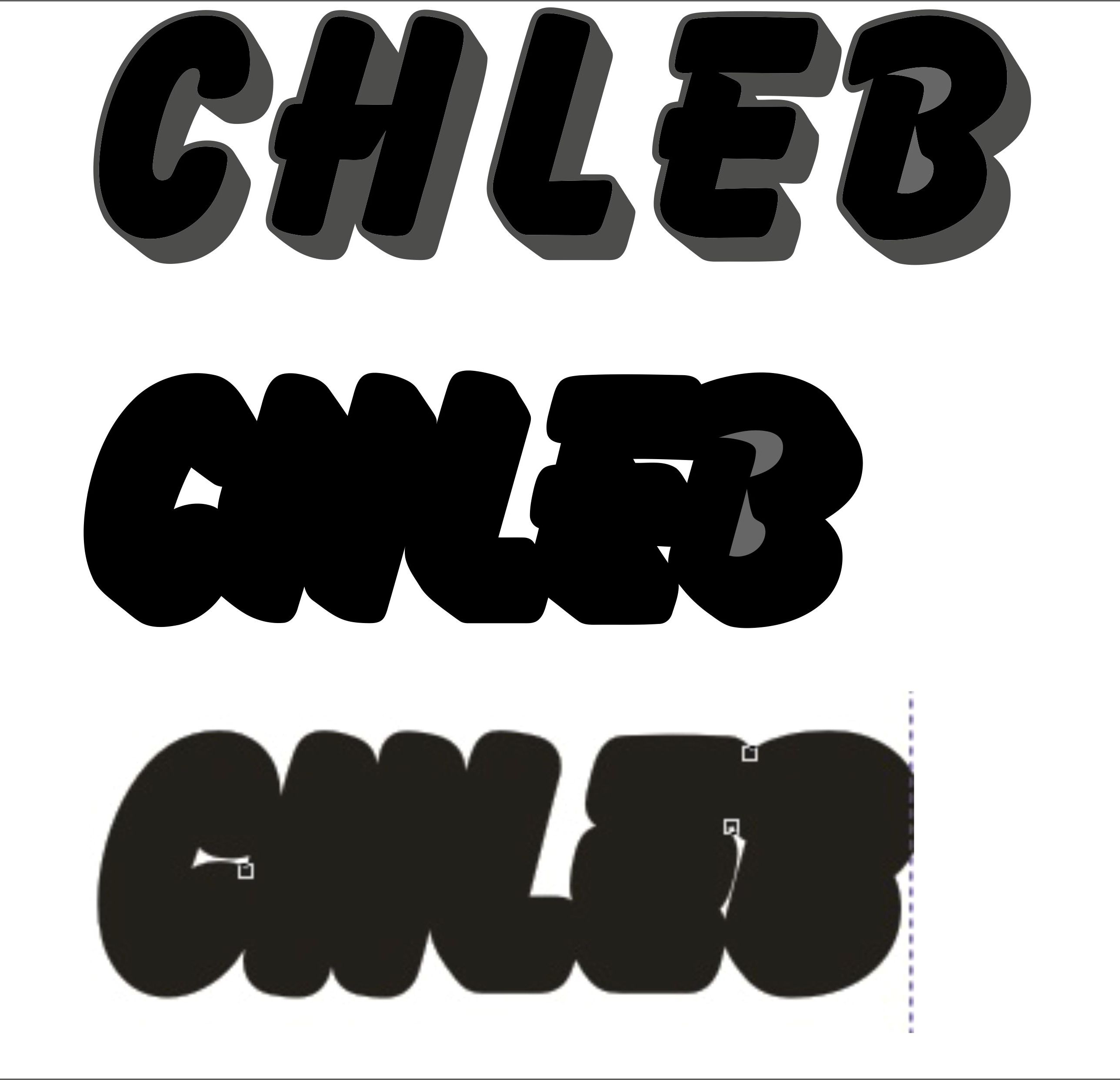 Mam bardzo duży problem. Szukam nazwy czcionki, a mam tylko jej czarny obrys. Jest to obrys słowa chleb. Czy ktoś może rozpoznaje tą czcionkę? Dzięki za fatygę.