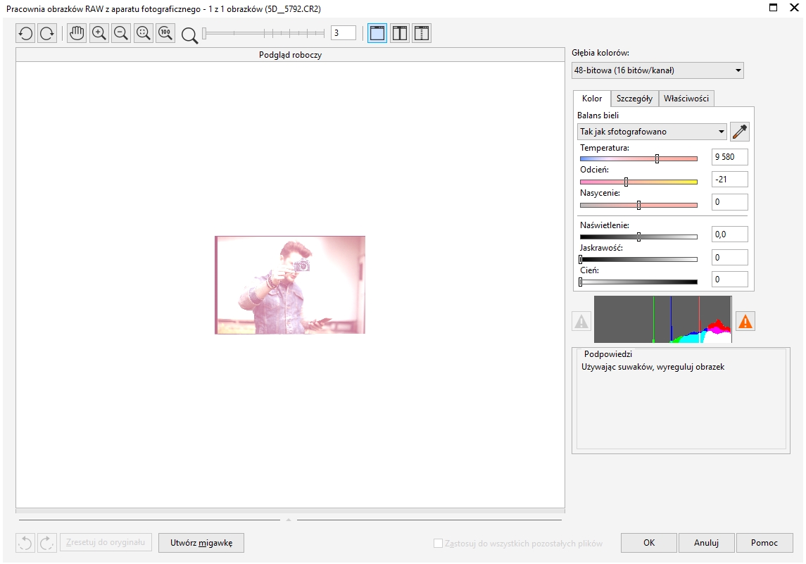 Z tym to się zgadza ,u mnie jest jakiś czarny zafarb .Do obróbki używam Digital Photo Professional 4 lub 3 w zależności od wersji RAW .