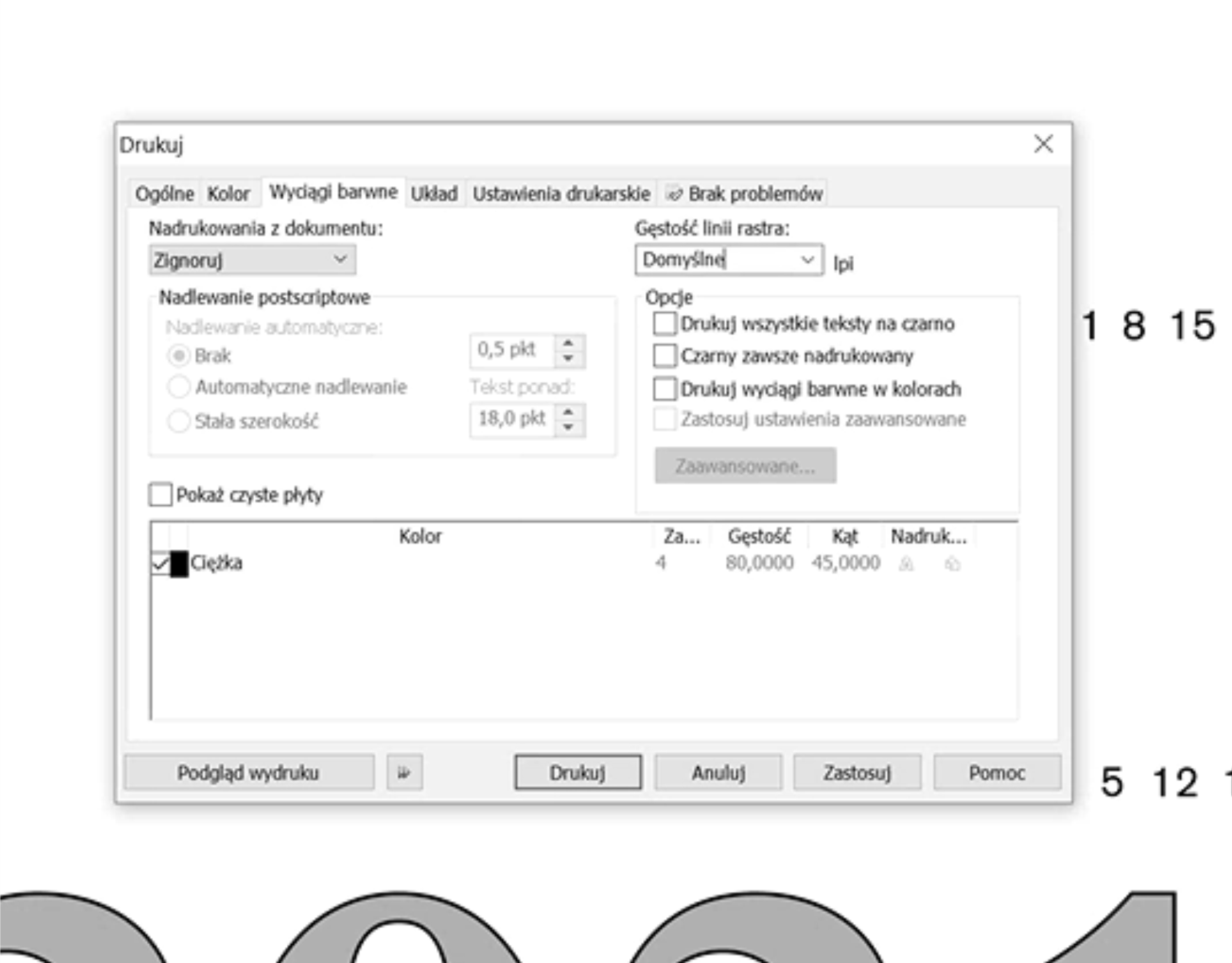 Mam problem, który w poprzednich latach przestał występować a teraz jest ponownie. Kiedy chcę drukować plik jest w nim panton 1 kolor w wersji 100% oraz 50 %, przy drukowaniu nie jestem w stanie wejść w opcje zaawansowane i zmienić gęstości rastra. Nie jest to aktywne. Zaznaczam wyciągi barwne a tam dalej nic. 80 jak byk stoi. Pomóżcie bo mnie szlag trafi. Oczywiście mogę sobie podrobić z kropeczkami ale to chyba nie tak ma działać? Żadne drukowanie "do pliku, do pdf" nie przynosi skutków. Jakie są przyczyny i możliwości ogarnięcia tego? Corel X5 na windows 10.