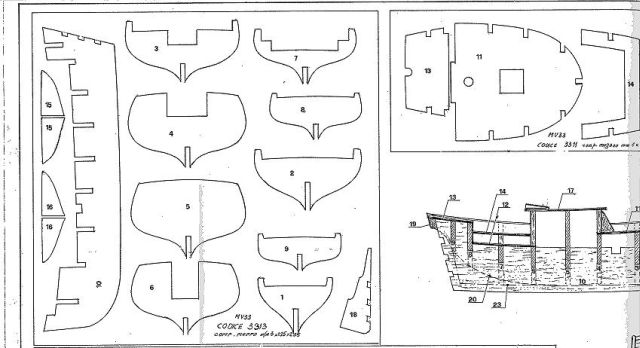Z tego rysunku planowałbym wyrysować stewy dziobową i rufową oraz stępkę.