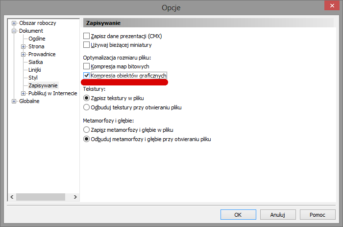 Jest też drugie pytanie. Kto o zdrowych zmysłach wyłącza kompresję obiektów graficznych, która standardowo jest włączona? Proszę bardzo, przyznajcie się jak na spowiedzi, kto z Was ma w komputerze dysk, którego nie da się całkowicie wypełnić, kto z Was tę opcję wyłączył?