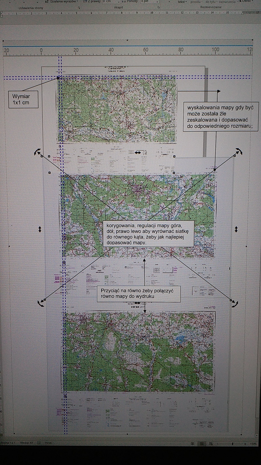 chcę połączyć mapy (3 arkusze w pionie) wyskalowane prawie 1:1 w pdf i tu moje pytania?