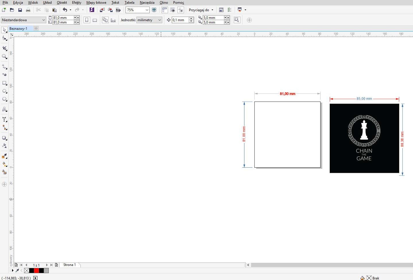 Ja już nie wiem.... dałem 81 x 81 i dałem ten kwadrat czarny na tło, większy niż rozmiar strony. I dałem przy zapisywaniu 2 mm spad.