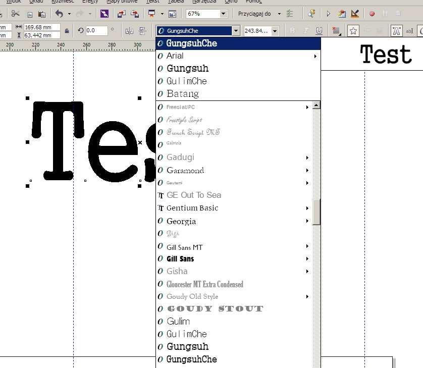 Użyłem w pracy fontu GungsuhChe - był widoczny w CorelDraw. Potem otwarłem dokument na innym komputerze. Program zażądał fontu GungsuhChe. Okazało się, że nie ma go na liście fontów. Zapytałem sąsiadów z Windowsami i Corelem czy mają taki font. Nie znaleźli. W domu wróciłem do oryginału dokumentu. Font GungsuhChe pokazał się na dokumencie oraz na liście fontów do użycia - do tego Gungsuh i Gul imChe. Chciałem przenieść font na inny komputer ale Corelowy Font Navigator nie znalazł takiego fontu na komputerze.