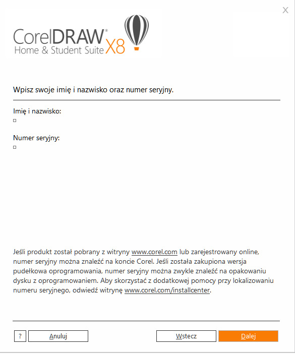 Wysłany: 21 Czerwiec 2017, 14:09   Instalacja Corela X8 - nie ma gdzie wpisać numeru