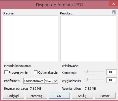 A jeszcze zrzut - takie mam ustawienia przy eksporcie do JPEG - Corel