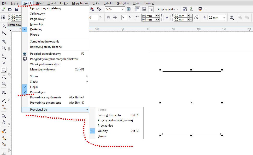 5. Jeżeli to się uda, to polecenie „Przyciągaj do prowadnic” powinno pojawić się też na pasku standardowym, pod strzałką „Przyciągaj do…”.