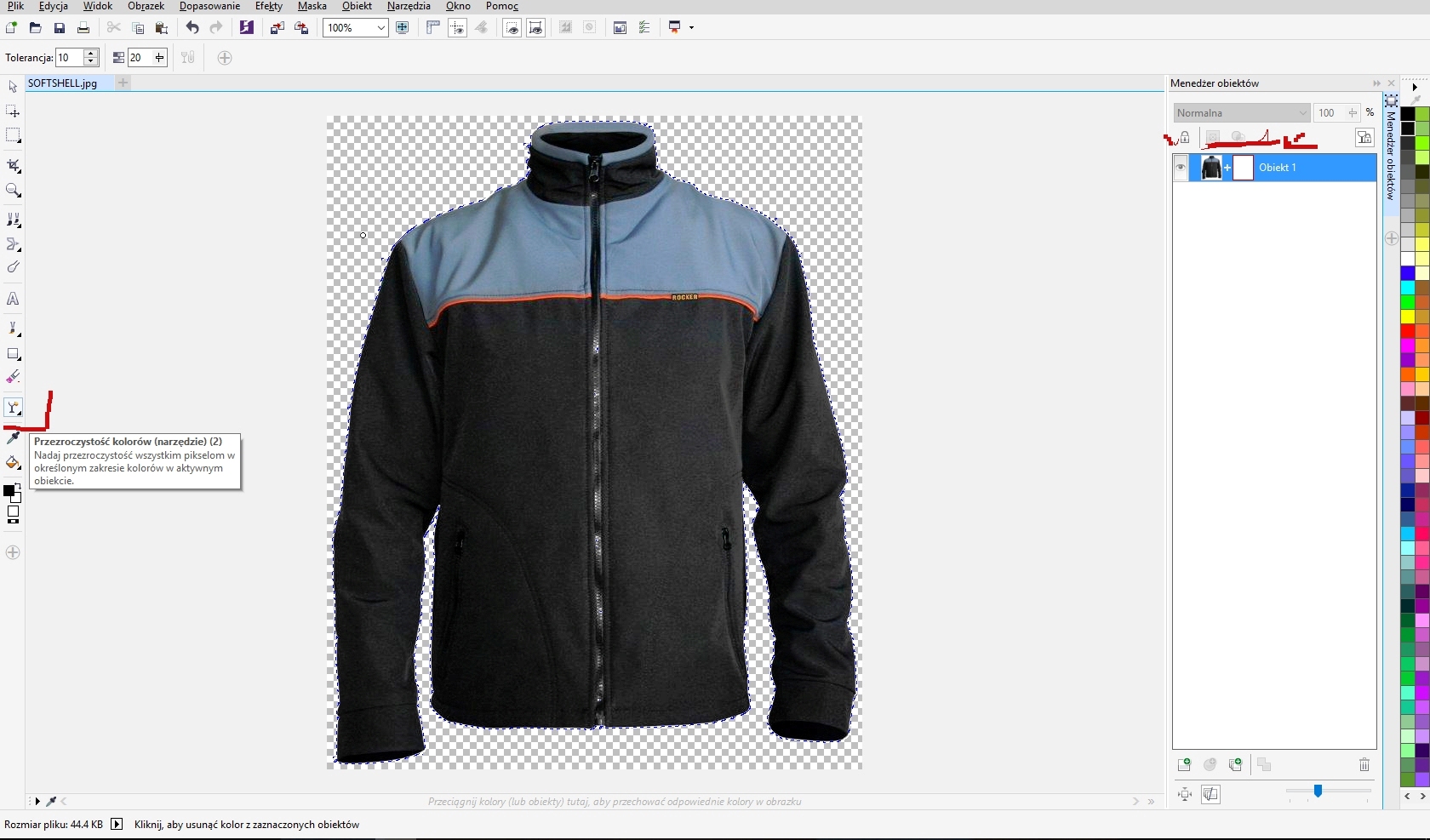 Na górnej belce z lewej strony jest opcja Tolerancja , można dopasować , gdyby tło było niezbyt dokładnie usunięte.