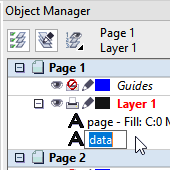 1. Utworzyć w nim tekst artystyczny i w Menedżerze obiektów nazwać go "data" (zał. plik data1).