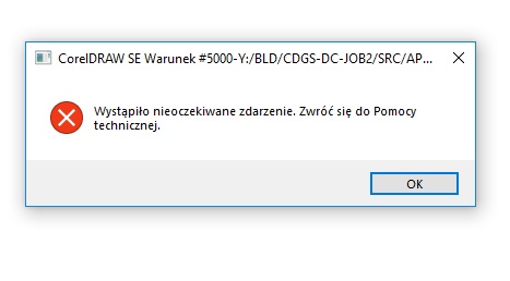 W czasie robienia projektu zauważyłam, że zniknęły mi czcionki - nie chciała się wyświetlać lista. Postanowiłam wyłączyć Corela i zresetować komputer. Tak też zrobiłam i chcąc uruchomić Corel otrzymałam dwa komunikaty: "Nie znaleziono czcionek. Aplikacja może być źle zainstalowana". Po wciśnięciu "OK" pojawia się komunikat z Warunkiem #5000 i corel nie uruchamia się. W załączniku podgląd komunikatu.