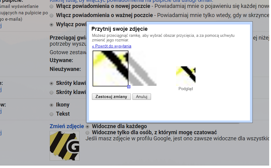 niestety tak jak wcześniej w załączniku pokazane , jest bardzo małe pole manewru w gmailu do dopasowania miniaturki |