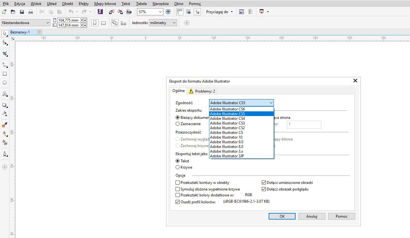 w CorelDraw w opcji Plik - Eksportuj jest kilka możliwości ustawień . Możliwe ,że lepiej użyć Eksportuj , zamiast zapisz jako AI .