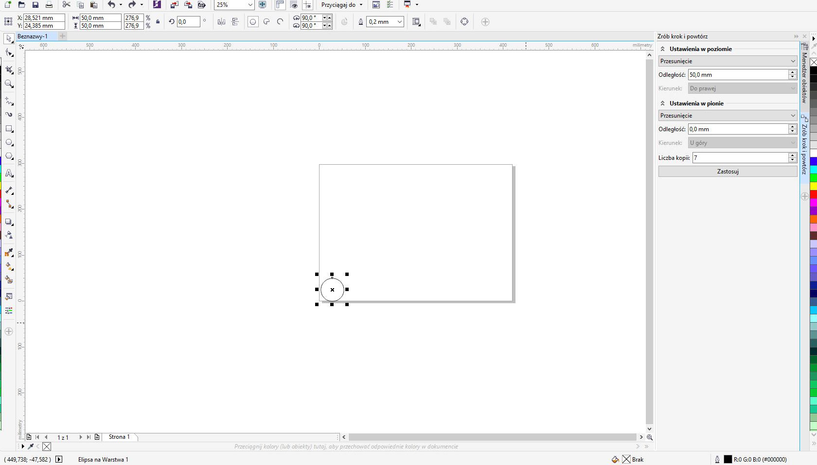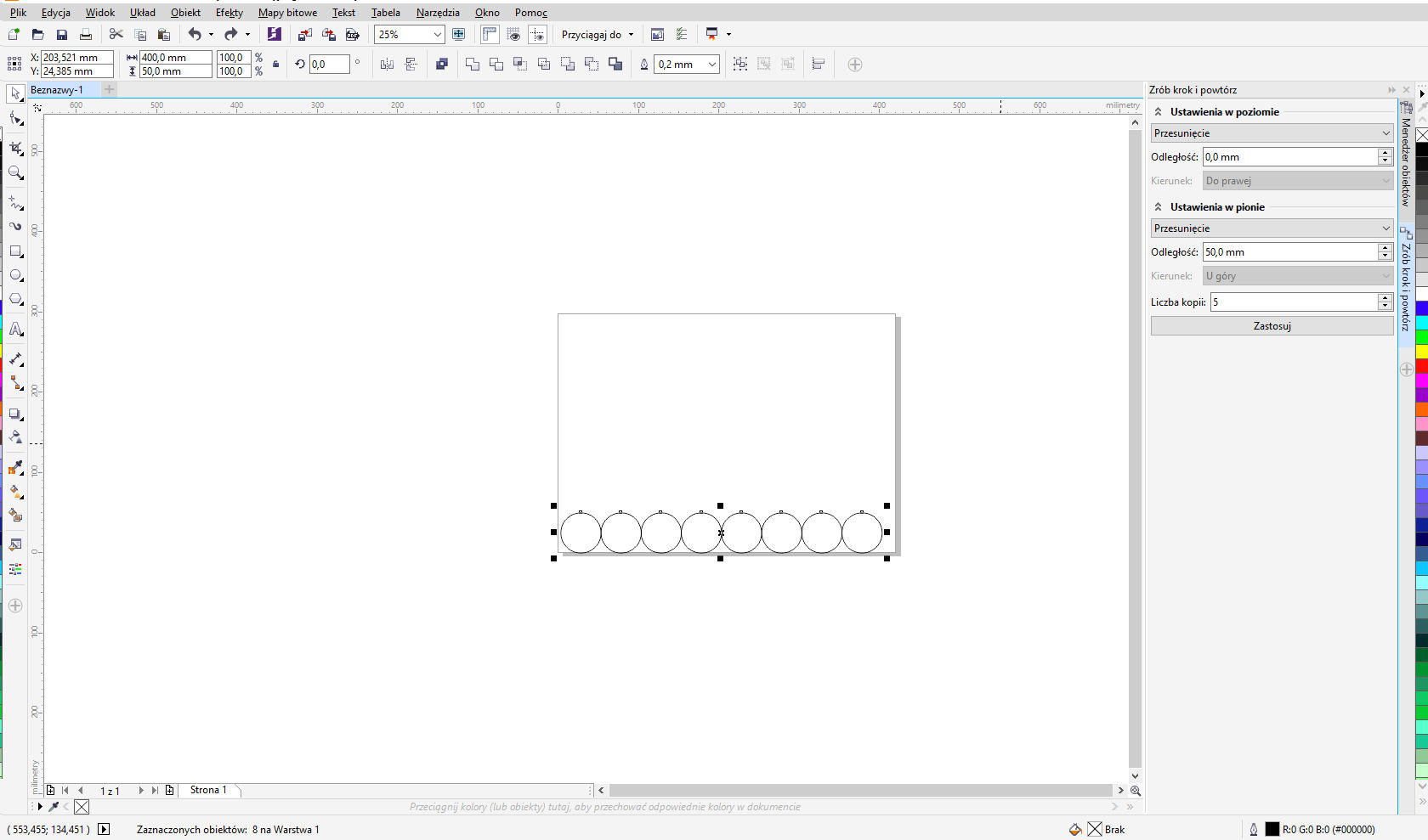 Następnie rysujesz element według wymaganych wymiarów i ustawiasz ilość jaka zmieści się w poziomie , w tym przypadku 50 mm czyli 5cm