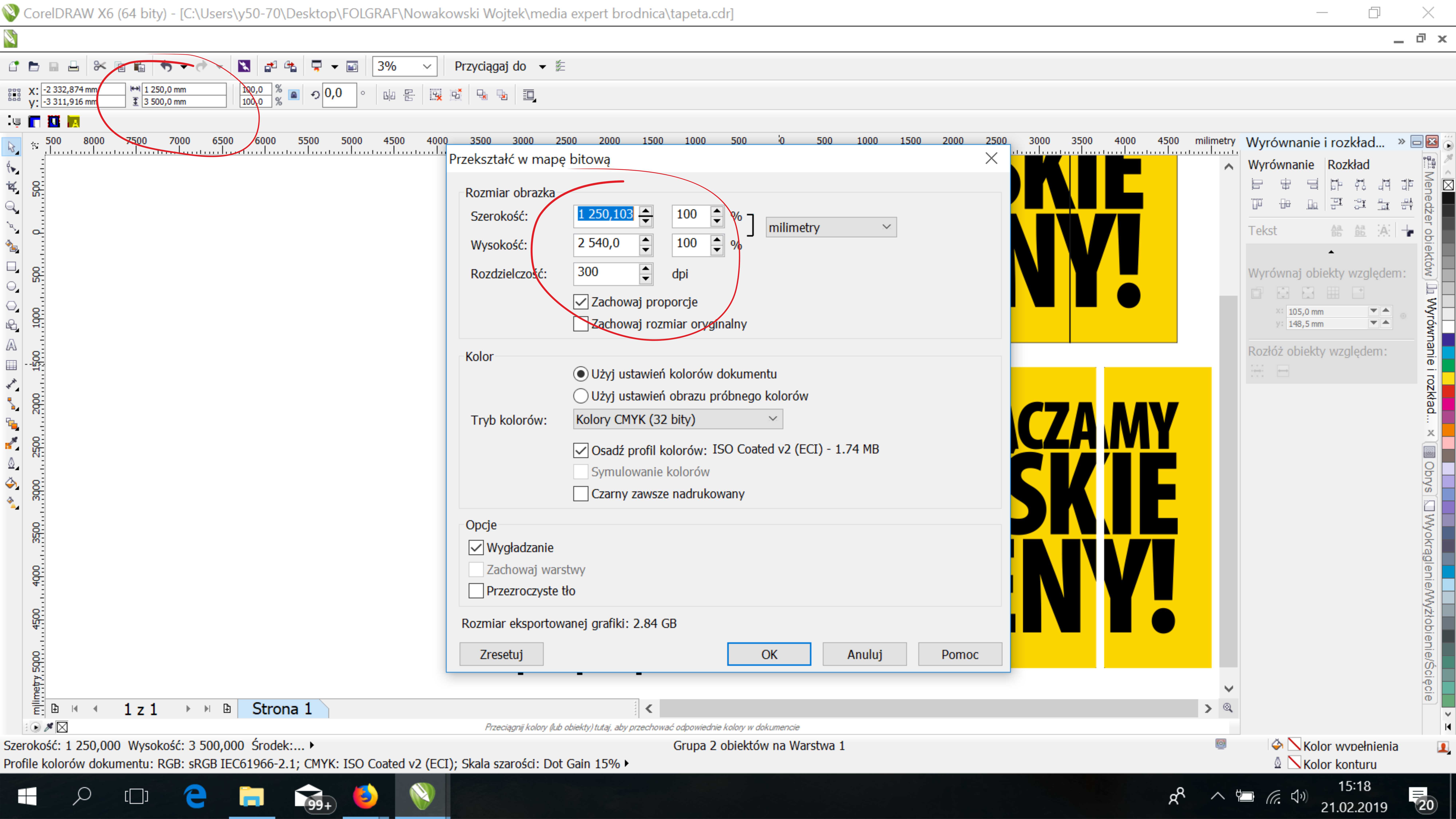 Przygotowuję pliki w corelu do druku. Są to dość spore grafiki bo obraz po wydruku ma czasem kilka metrów długości. Mniejsze pliki eksportuję w skali 1:1 300dpi kompresja LZW, bez problemu, jednak te większe pliki program sam zmniejsza. Z czego to wynika? Jakieś ograniczenie programu? Może pamięć operacyjna komputera? Jak to przeskoczyć?