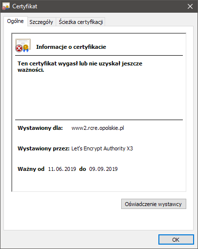 Certyfikat został przedłużony do 24 grudnia, więc hula na razie.