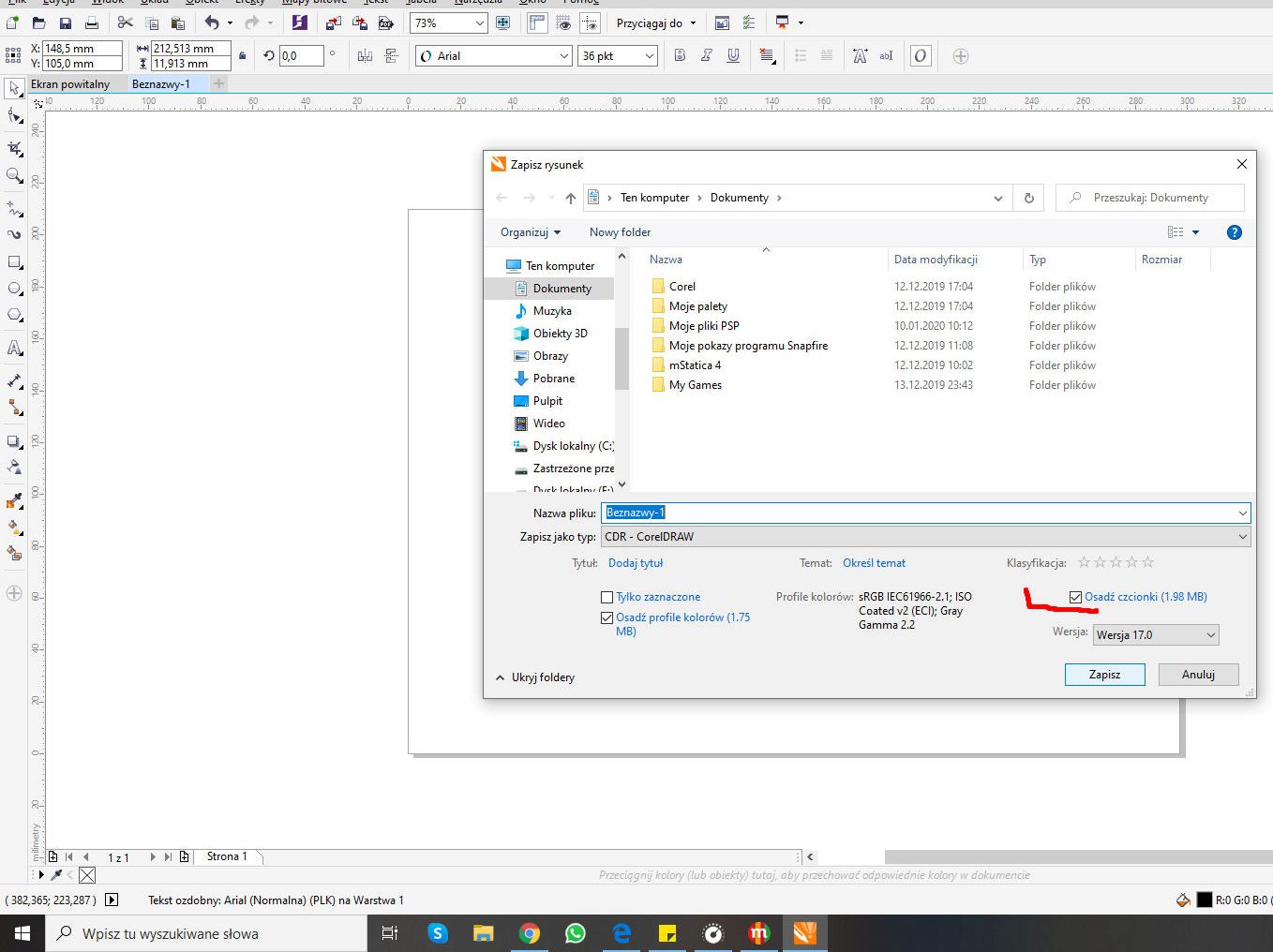 Teraz popatrzyłem i u mnie okno zapisywania rysunku wygląda inaczej. Brak tam opcji osadzania czcionek, jakoś nie mogę tego znaleźć.