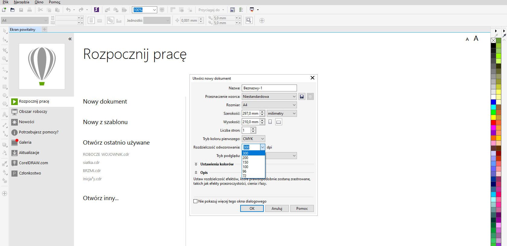 oraz po kazdym odpaleniu corela automatycznie jakośc ustawia mi się na 300dpi