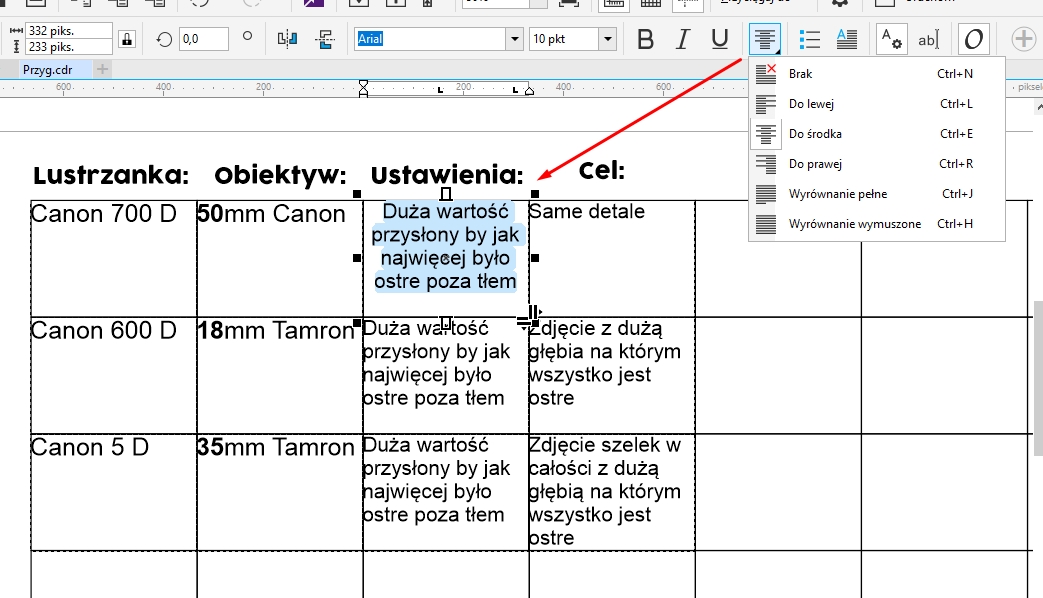 Obleciałęm równo obszarem edycji tekstu to pole. Czy da się teraz wyrównać tekst z tego polo nie tylko na zasadzie lewo-prawo ale także góra-dół? Poniżej w załączniku pokazuje całą tabelkę, klikijcie by zobacyzć.