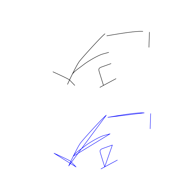To są krzywe w corelu te u góry. Po eksporcie i imporcie dostaje te u dołu.