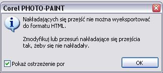 A jak prubuje zrobić włąsne to wyskakuje idiotyczne okienko o treści, ze "nakłądających się rpzejsć nie można zapisać w formacie HTML". Bez sensu! To niby co, mam zrobić rollovery, które nie są na tych samych pozycjach? Jeden tutaj a drugi gdzieś w rogu?! |