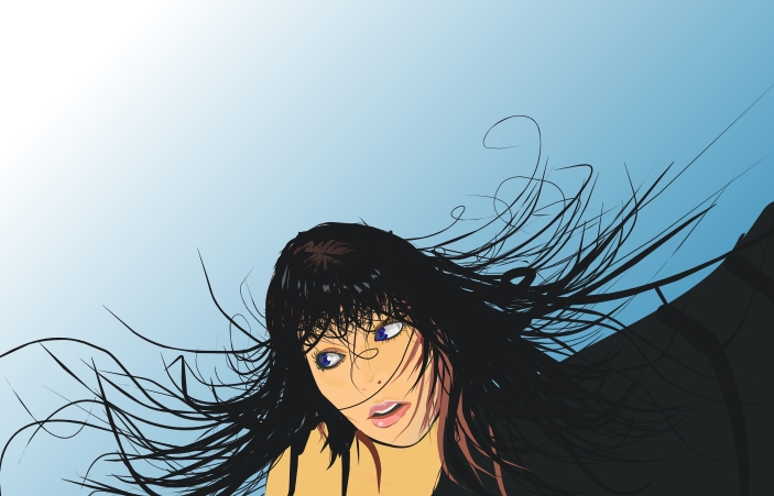 | Patrząc obiektywnymi oczkami początkującego amatora: zbyt nisko osadzona linia kształtu głowy,co sprawia wrażenie że nasza modelka ma świnkę,powiększone migdałki,bądź przesadza ze słodyczami;D Pomysł z włosami fajny,jednak niektóre pasma są nieco "kanciaste",i często układają się zbyt losowo.Prosty gradient jako tło to chyba za mało,może wystarczyła by zmiana jego kolorów-a jak nie,to zawsze można by wkomponować jakieś bajery;)Świetnie wykonane usta,refleksy świetlne na włosach też niczego sobie:] |