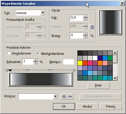 Witam, to nic więcej jak przejście tonalne . Rozwijasz przed ostatnią ikonkę na pasku narzędzi (F11), i tam właśnie jako 2 w kolejce jest ta funkcja.