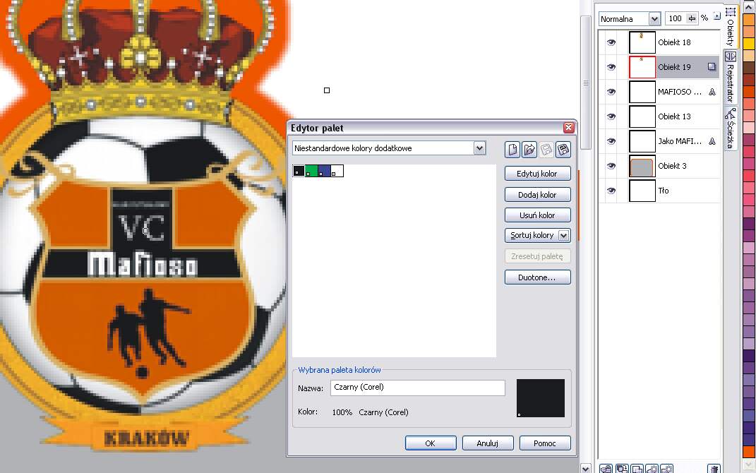 Niestety nie działa. Dodałem kolor pomarańćzowy, aby cień na logo był taki sam jak otoczka. Ustawiłem, dodałem do palety na samym dole się pojawił - jak widzisz - w prawym dolnym rogu na palecie. Wchdoze w to okno, co mówisz - usuwam pomarańćzowy (na obrazku już go nie ma), ale na palecie nadal widnieje. O co chodzi?