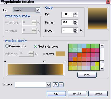 Kolory kasujemy z konkretnej palety. Nie wiem w czym problem, chyba ze o co inneego pytasz. Np o te dodatkowe kolory w wypelnieniu tonalnym na tej lini symulujacej sklad kolorow budujacych gradient.