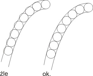 niestety obrys nie wystarczy, jak widzimy na łuku gdzie promień krzywizny jest mniejszy zwiększa się niedokładność