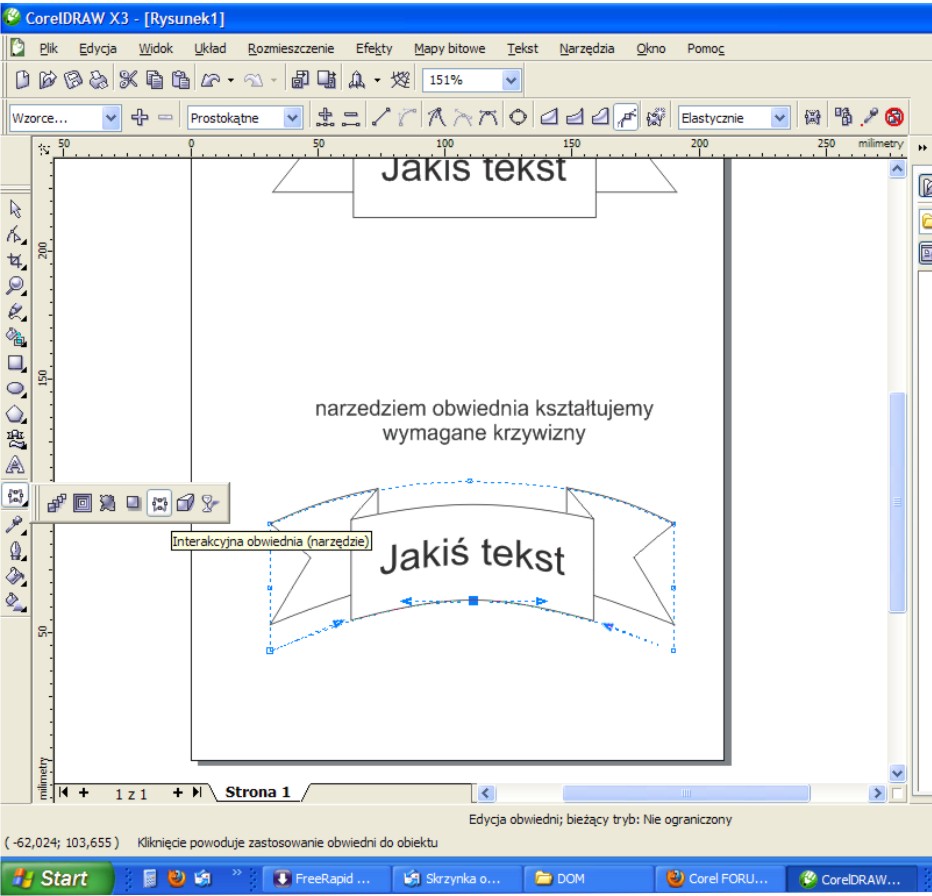 Otwieram kształty podstawowe/gwiazdy i wybieram jedną z dwóch wstęg. Jak je zaokrąglić? i przy okazji tekst wpisany w nie?
