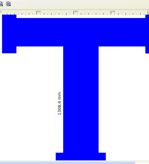 Litera T ma 1308,4 mm wymiar jest z boku przy lewej krawedzi przy "nodze litery"